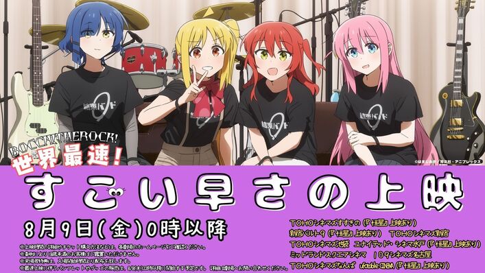 『劇場総集編ぼっち・ざ・ろっく! Re:Re:』 公開初日となる8月9日(金)の0時以降(8日(木)24:00以降)より、一部の劇場で最速上映の実施が決定いたしました。
