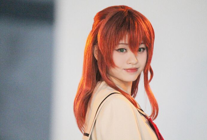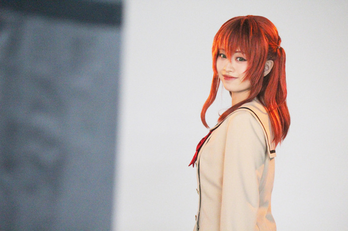 制服を着て、眉もウィッグと同じ色に染めて、それから今回はカラコンもつけて。鏡の中の自分を見て「喜多ちゃんがキタ!」って思いました(笑)。